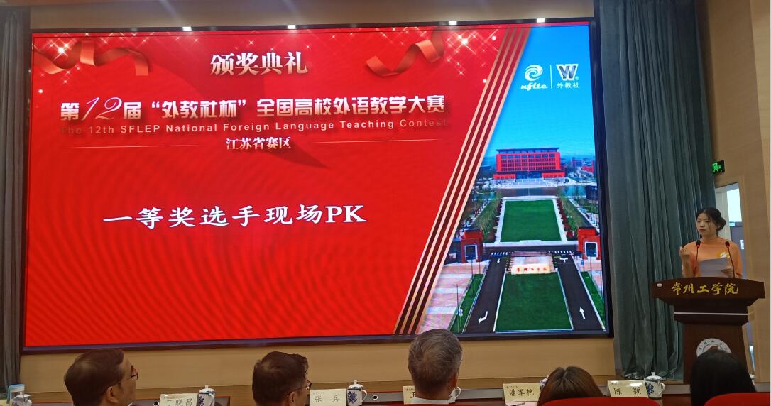 6月18日至20日,第十二届“外教社杯”全国高校外语教学大赛江苏赛区决赛在常州举行。我校教师蔡金秋作为第十届“外教社杯”全国高校外语大赛江苏省赛区一等奖的第一名,受邀参加此次现场PK。最终,我校教师蔡金秋和分别来自东南大学、河海大学的两位老师胜出,将代表江苏省赛区参加全国决赛和总决赛。