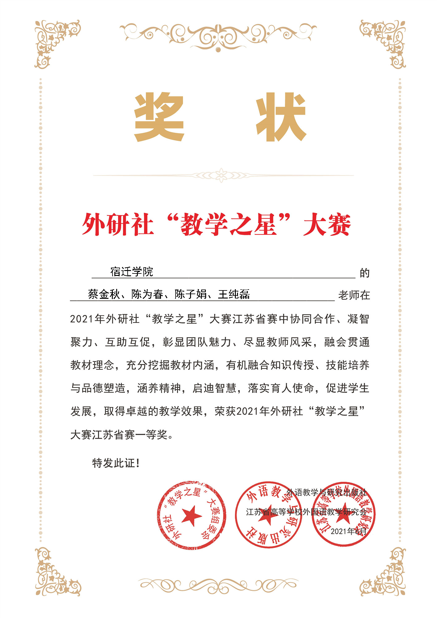 6月4日至6月6日,2021年外研社“教学之星”大赛江苏省级现场决赛在苏州大学成功举办。