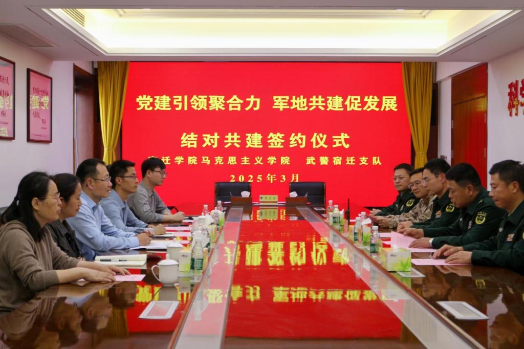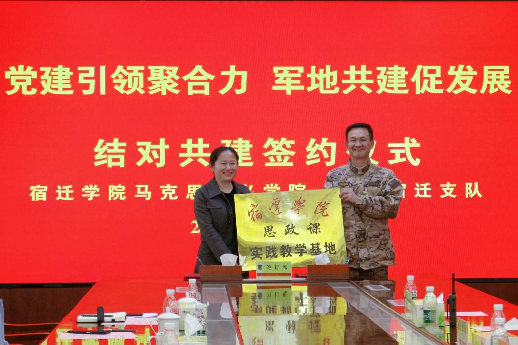 会上,何刚介绍了武警宿迁支队的历史沿革、任务职责、社会贡献等基本情况。姜强强介绍了宿迁学院马院发展历史、师资队伍建设、教科研取得业绩、人才培养等基本情况。双方在促进思政育人、思政课实践基地建设等方面达成共识。马长保、邓平安分别代表双方进行了结对共建签约。活动中还为“宿迁学院思政课实践教学基地”授牌。