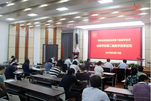 6月19日下午,法政学院在校图书馆学术报告厅举办第二届教学改革论坛。本届论坛的主题是常态化疫情防控背景下的教学改革。党委常委、副校长丁红燕教授出席论坛。法政学院全体教师参加论坛活动,教务处吴绍兵处长作专家点评,法政学院院长李明建主持论坛。